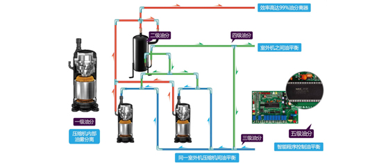 系統(tǒng)根據(jù)系統(tǒng)負(fù)荷情況,輪換設(shè)置優(yōu)先開啟的室外機(jī)模塊的壓縮機(jī)順序,平衡分配每臺室外機(jī)模塊的運(yùn)行時間,大大提高了機(jī)組的可靠性和使用壽命。